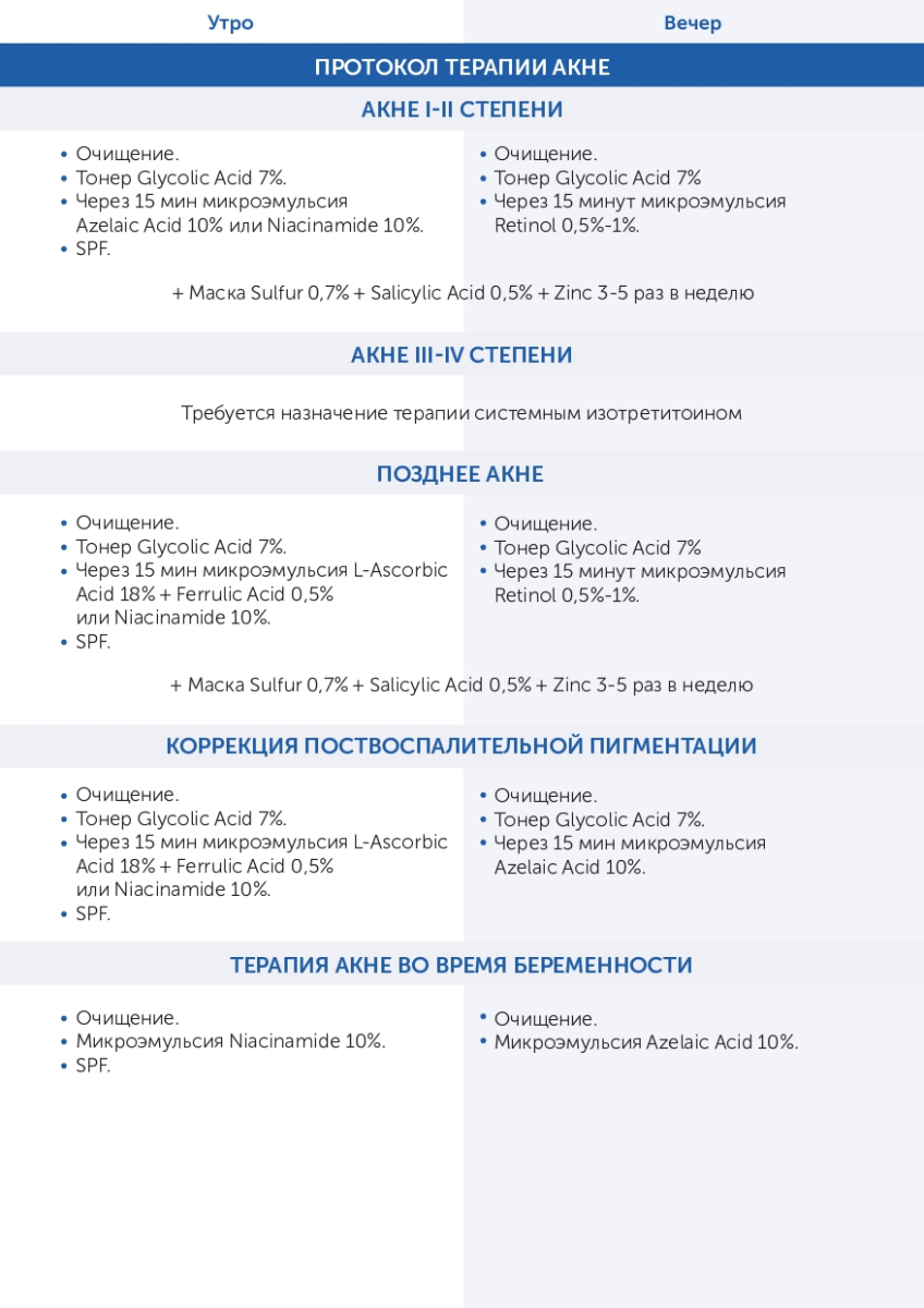 Нарушение пигментации кожи, склонность к Акне, жирная и комбинированная кожа